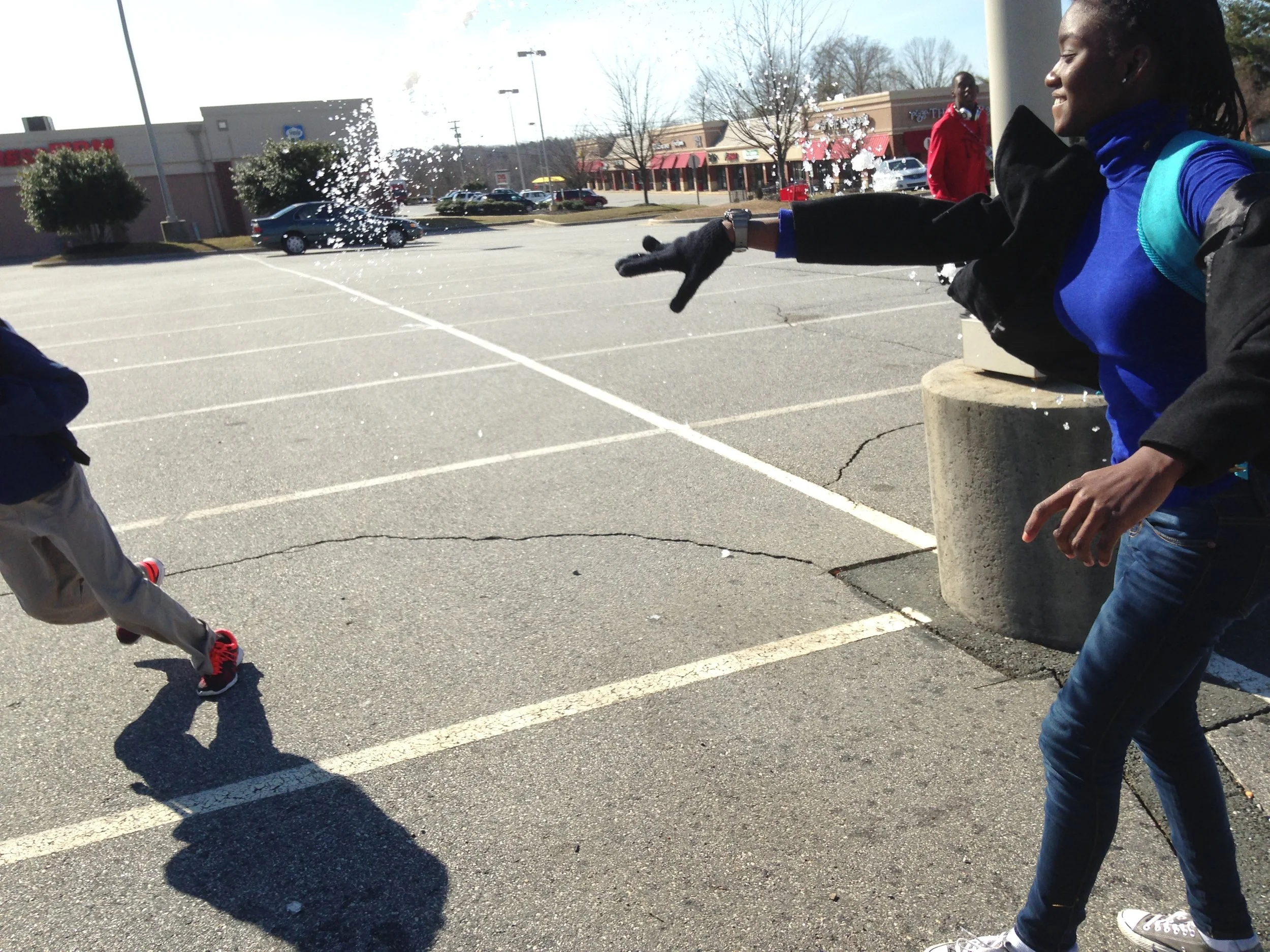 What do you do when you see snow for the first time in your life? Have a snowball fight, of course!